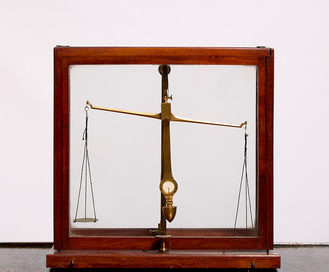 Balanza de precisión. En realidad, era una balanza de pesar diamantes heredada de uno de sus abuelos, que mi padre utilizaba para pesar los componentes de sus reactivos. En los años 50, el mercado de productos de laboratorio era complicado. Las importaciones eran caras y escasas y había que recurrir a la artesanía química de la que mi padre era un experto.