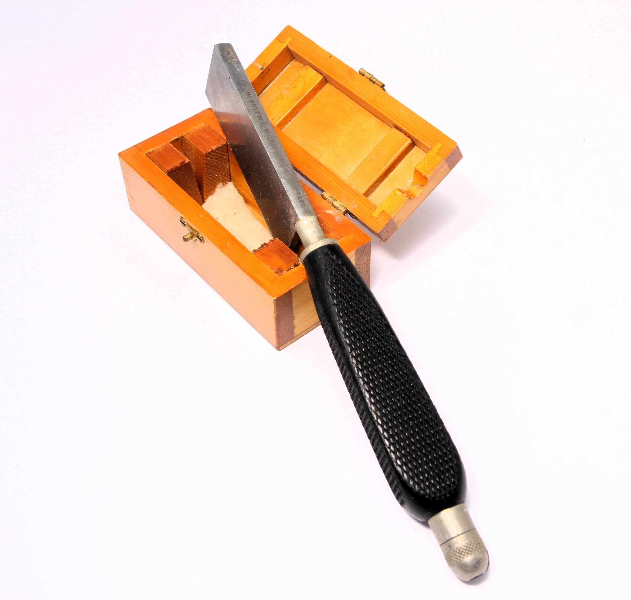 Cuchillo para cortes histológicos con estuche, mango y hoja recambiable de acero Wilkinson.