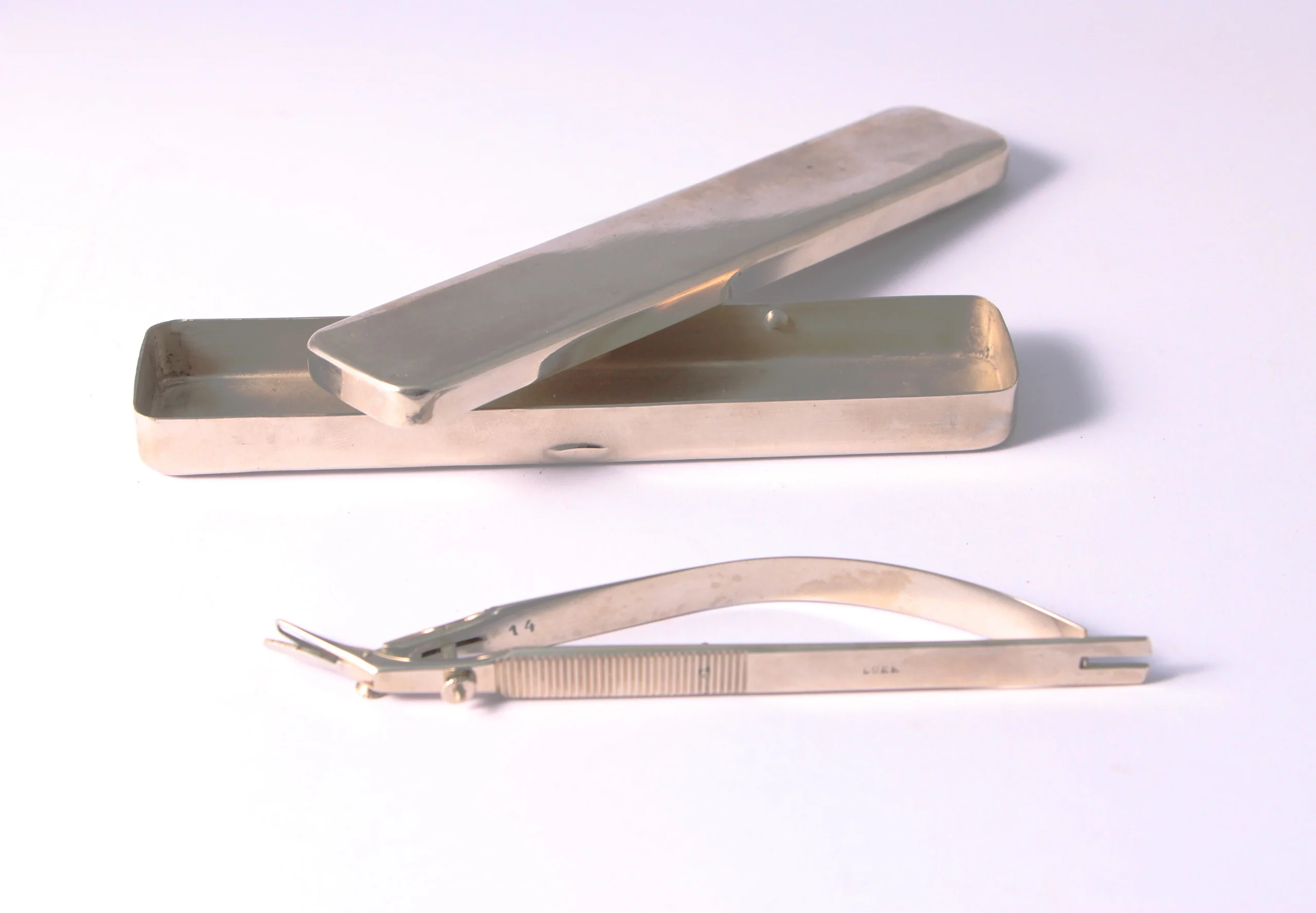 Pinzas sacabocados para esclerotomía, muy utilizadas en las primeras técnicas de cirugía antiglaucomatosa.