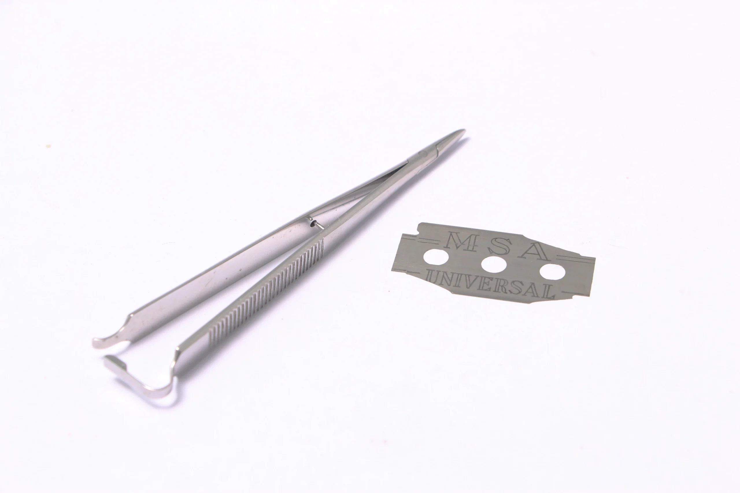 Para su empleo, se pinzaba el borde de una cuchilla de afeitar convencional previamente esterilizada y se rompía una esquirla del borde cortante que luego se desechaba. Método precursor de los actuales cuchilletes desechables. Una cuchilla servía para varias oeraciones y no todas se podían emplear porque algunas marcas no se partían, se doblaban y no se podían conseguir buenas esquirlas de corte.