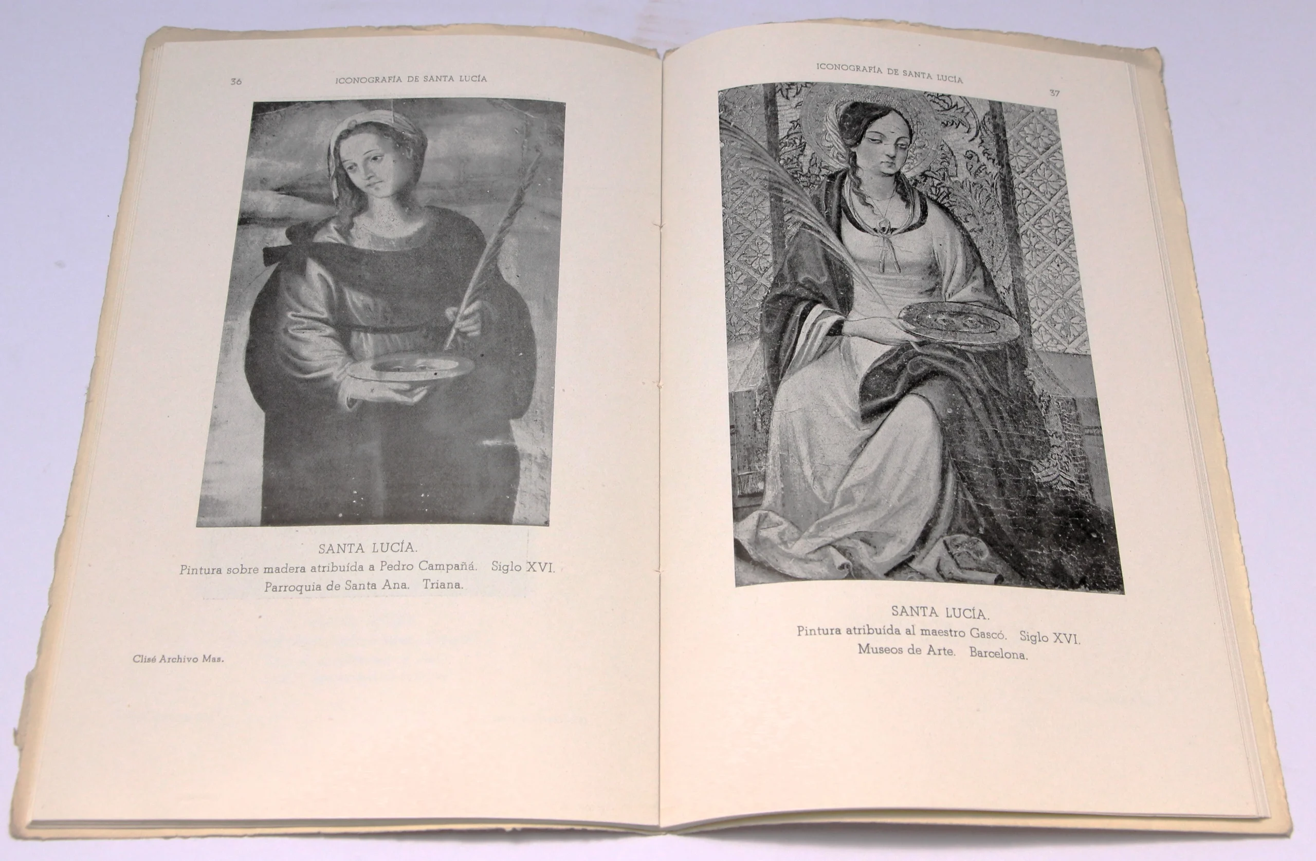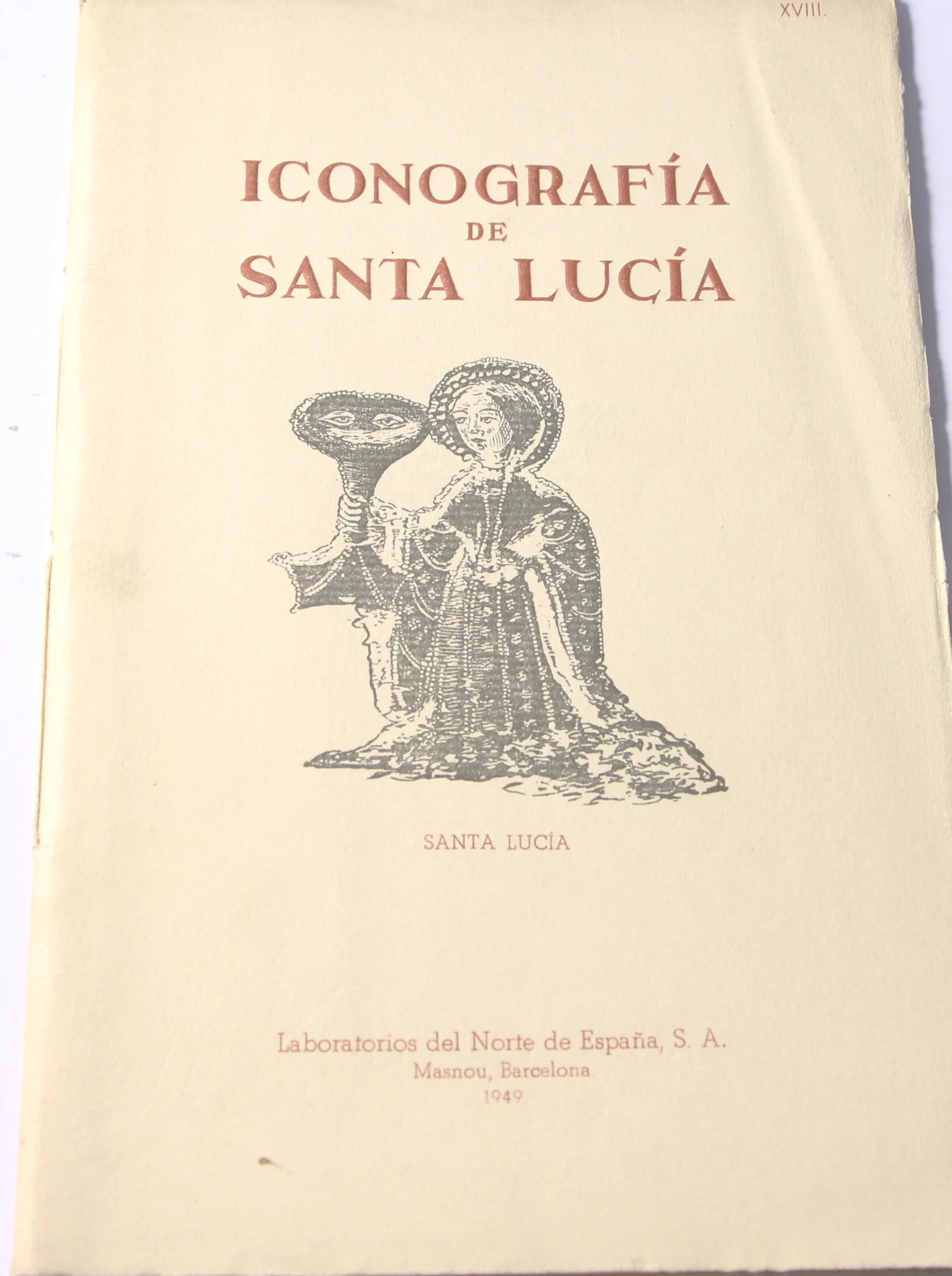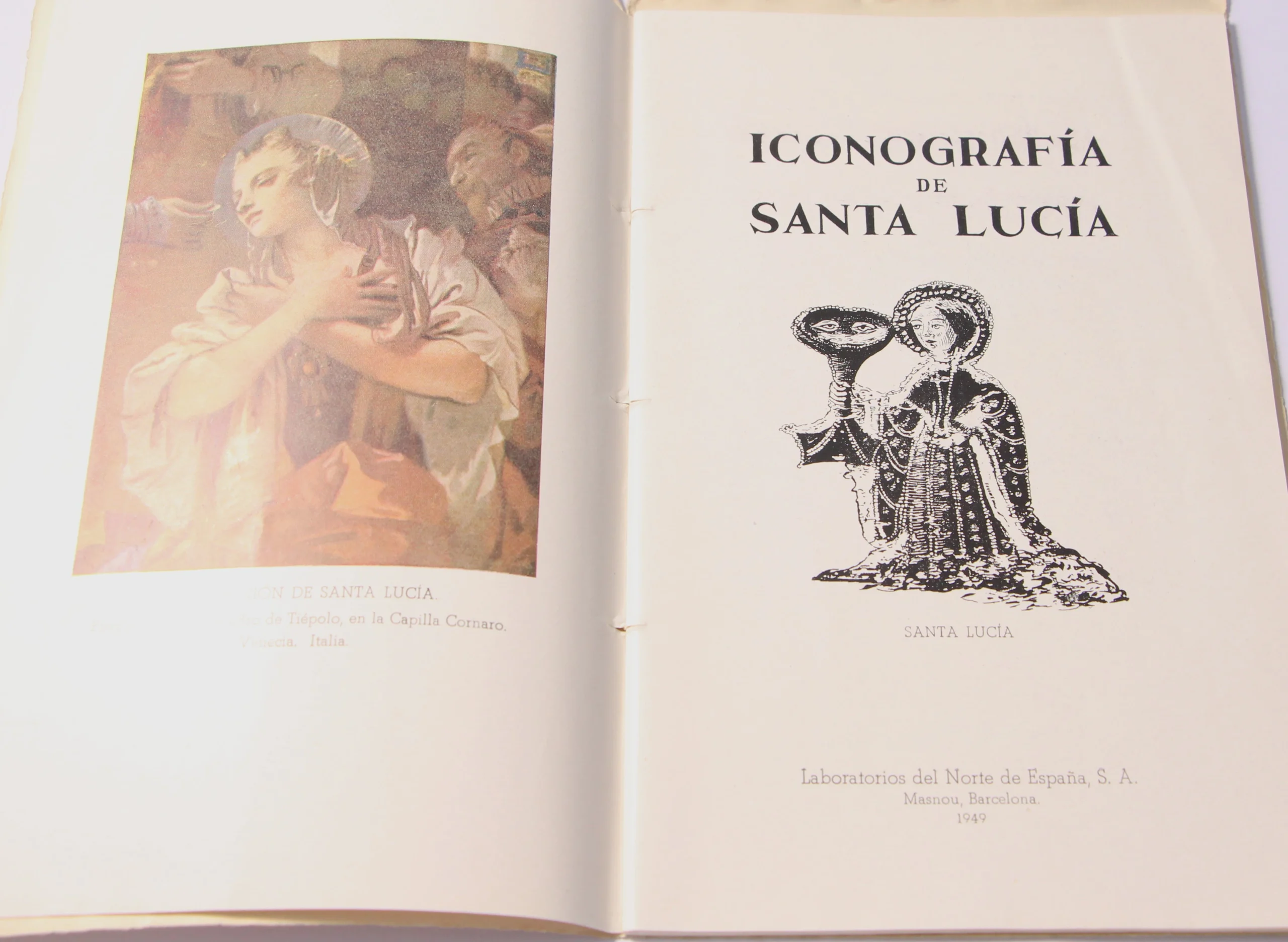 Santa Lucía es la patrona de los oftalmólogos porque en su martirio le arrancaron los ojos. El folleto recoge una colección de cuadros y grabados representando a la santa. Forma parte de una colección editada por el Laboratorio de publicaciones histórico-artísticas.