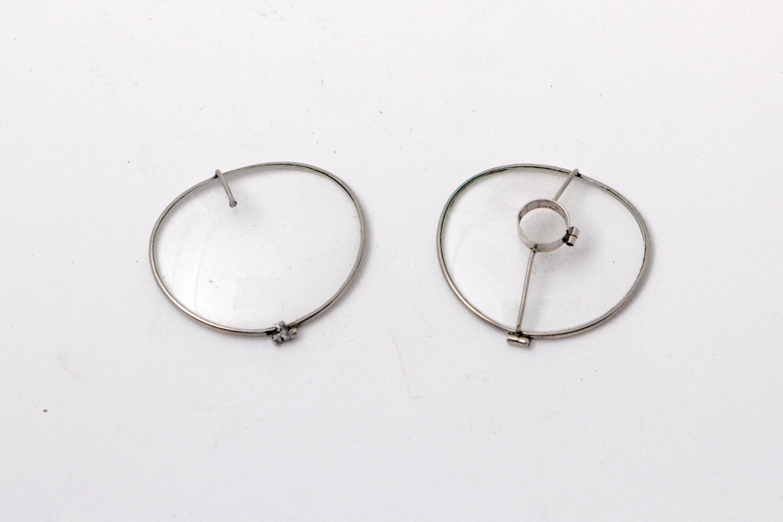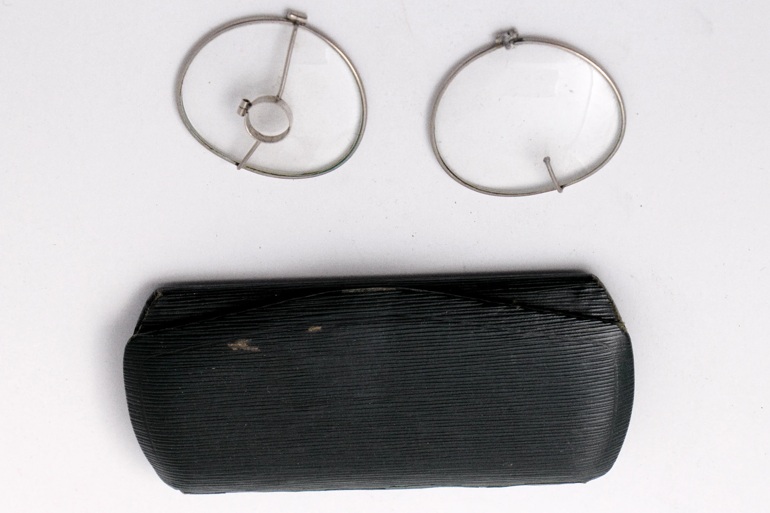 Juego de dos cristales con marcas metálicas con estuche. ¿Para la localización radiográfica de cuerpos extraños intraoculares?